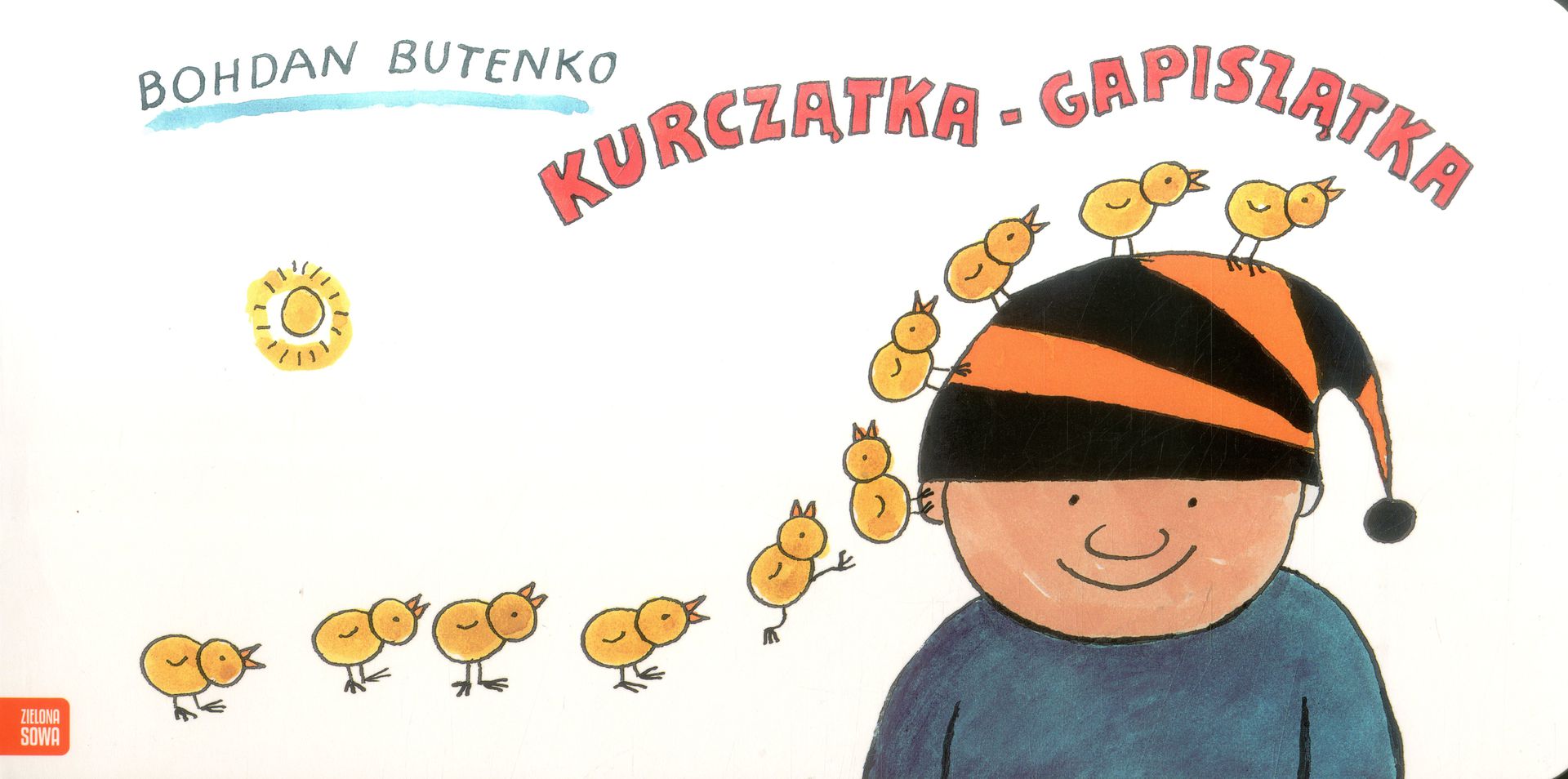 Kurczątka-gapiszątka / Bohdan Butenko. - Warszawa : Zielona Sowa, copyright 2017. - [20] stron : ilustracje kolorowe ; 15x29 cm.